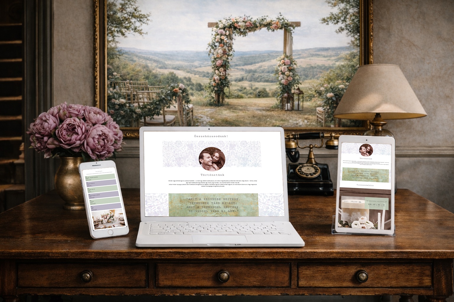 Nézzétek meg, hogyan nézne ki az esküvői weboldalatok. Próbáljatok ki több stílust is kötelezettségek nélkül!